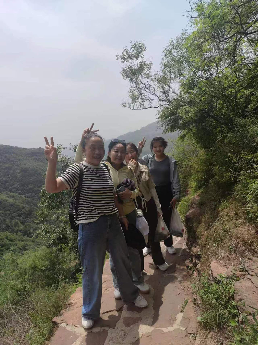 到達景區(qū)后,大家乘坐景區(qū)內小火車來到趙匡胤千里送京娘的青銅雕像前合影留念。撫摸著青銅雕像,品味著這個凄美的愛情故事,感慨萬千。隨后,大家乘上游船,欣賞京娘湖碧波蕩漾的旖旎風光,感受著一線天峰林絕壁的壯美風景。到達碼頭后,大家拾級而上開始登山。隊伍分為前鋒、后營、中軍,團隊前后呼應,協調行動。上山的路雖然很陡峭曲折,有的路段甚至沒有臺階,但大家相互鼓勵,相互加油,堅持著向上攀登,向上攀登。中午,在山里人家簡單用餐后小憩一會兒,午后繼續(xù)向山頂發(fā)起沖鋒。每當大家疲憊至極時,就停下來休息一下,吹著清爽怡人的山風,回眸走過的山路,又是一番別樣的風景,一身的疲憊和勞累一掃而光。短暫休息后,大家繼續(xù)向上攀登,有的員工走不動了,落在了后面,大家就扶一把,拉一把,幫助他們跟上隊伍。在大家的共同努力下,終于成功登上了宋祖峰的頂峰,整個團隊沒有一個人掉隊。特別是車間女工表現的非常頑強,體現了不怕苦不怕累、積極向上的精神風貌。團隊的一些老員工,還有員工家屬,不管是老人還是孩子,都表現的很好,堅持到了最后,站上了峰頂。